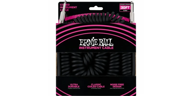 The Ernie Ball Ultraflex 30 Foot Instrument coil Cable in Black seamlessly combines stand-out looks with superior performance. These cables have a really substantial feel to them, borne out by the specs. Dual-shielding ensures super-low noise performance and durability. The classic coiled cable design is both flexible and ultra-durable, while the cabling itself is 99.95 oxygen-free, practically eliminating the potential for corrosion. The jack ends are unscrewable for servicing, and the cable is additionally covered by a limited lifetime warranty, meaning that Ernie Ball will replace any defective cable (with proof of purchase) while owned by the original purchaser.