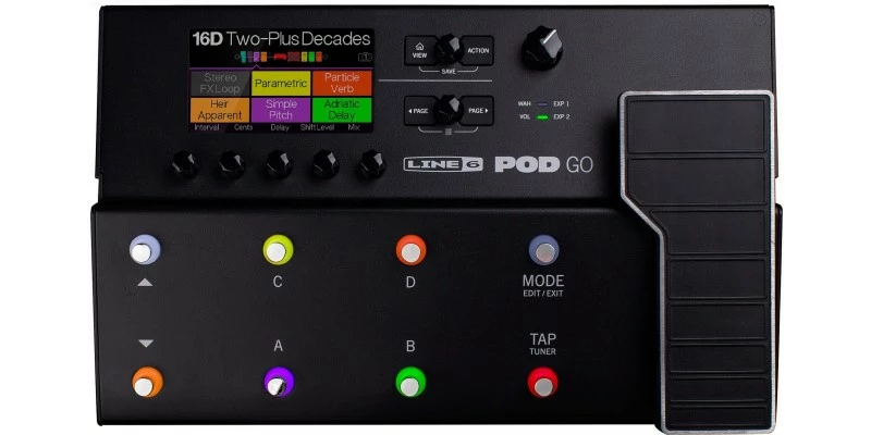 A streamlined plug-and-play interface and simple and intuitive workflow make POD Go exceptionally easy to use. Choose, edit, and control sounds using the large color LCD screen, five push encoders, eight footswitches, and a multi-function expression pedal—plus add a second expression pedal or two external footswitches for even more real-time control.
