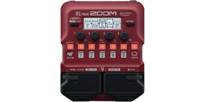 The Zoom B1 Four is a lightweight and powerful Bass Multi-Effects Pedal which can function as a standalone unit, or seamlessly integrate into an existing pedalboard. Over 60 effects are provided, along with nine amp models and 68 rhythm patterns. A looper with 30 seconds recording time opens up the ability to overdub, creating rich soundscapes with ease.